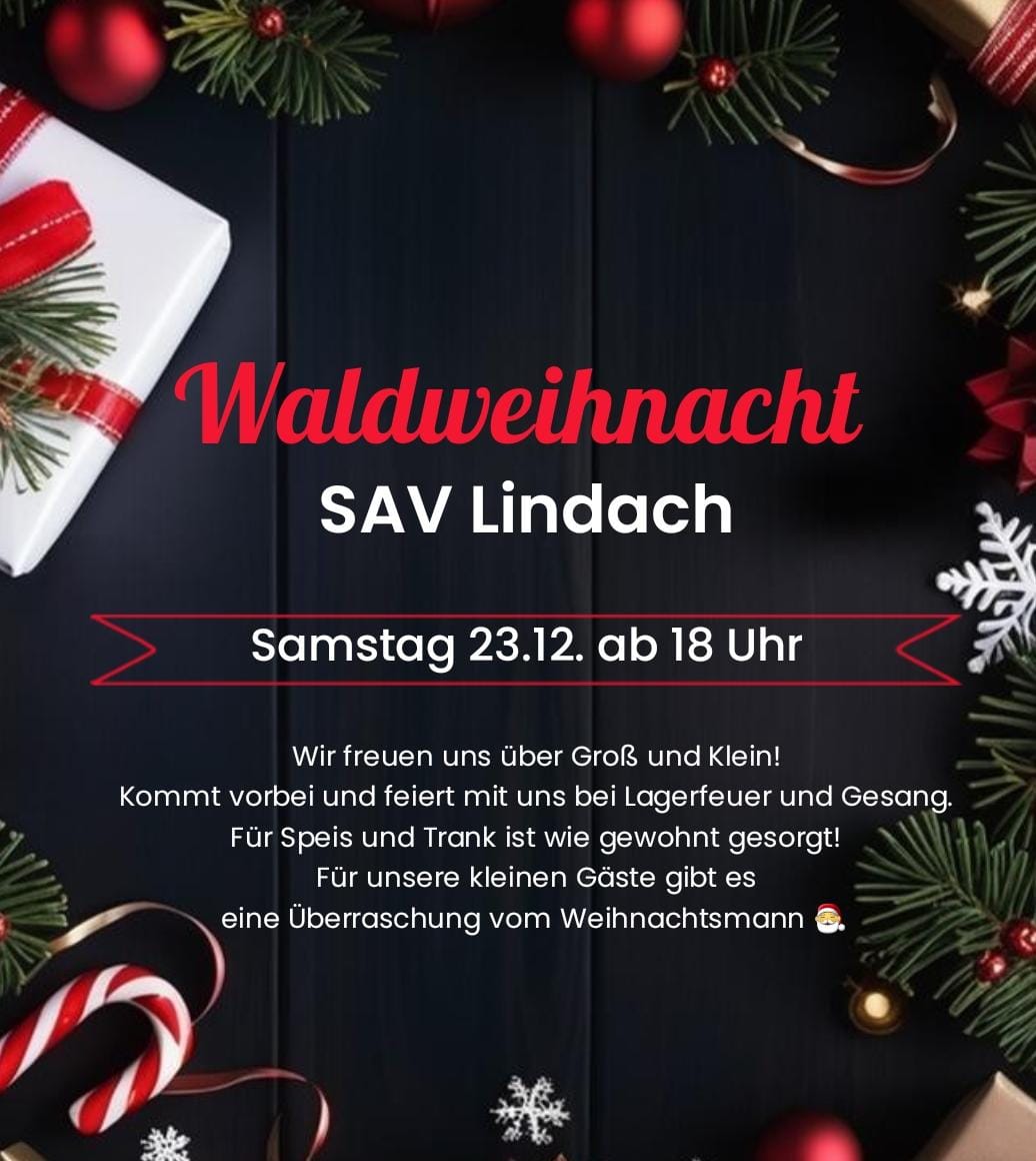 Die Ortsgruppe Lindach des Schwäbischen Albvereins läd zur traditionellen Waldweihnacht an der Schutzhütte im Schelmenwasen (beim Wasserturm) ein. Alle Mitglieder, Gäste und ganz besonders alle Kinder, Eltern und Großeltern sind herzlich eingeladen.